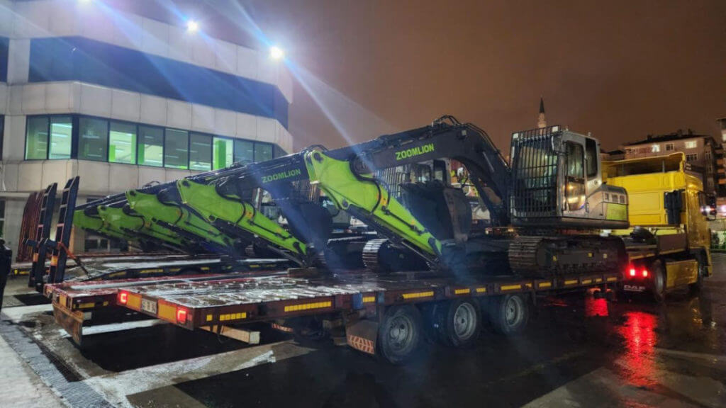 Após os terremotos, a ZOOMLION Turquia, imediatamente, enviou uma equipe de resgate composta por engenheiros de serviço e operadores de máquinas, que levaram cobertores, medicamentos, alimentos e outros materiais de extrema necessidade e, juntas as cinco primeiras escavadeiras, partiram para a área durante a noite.